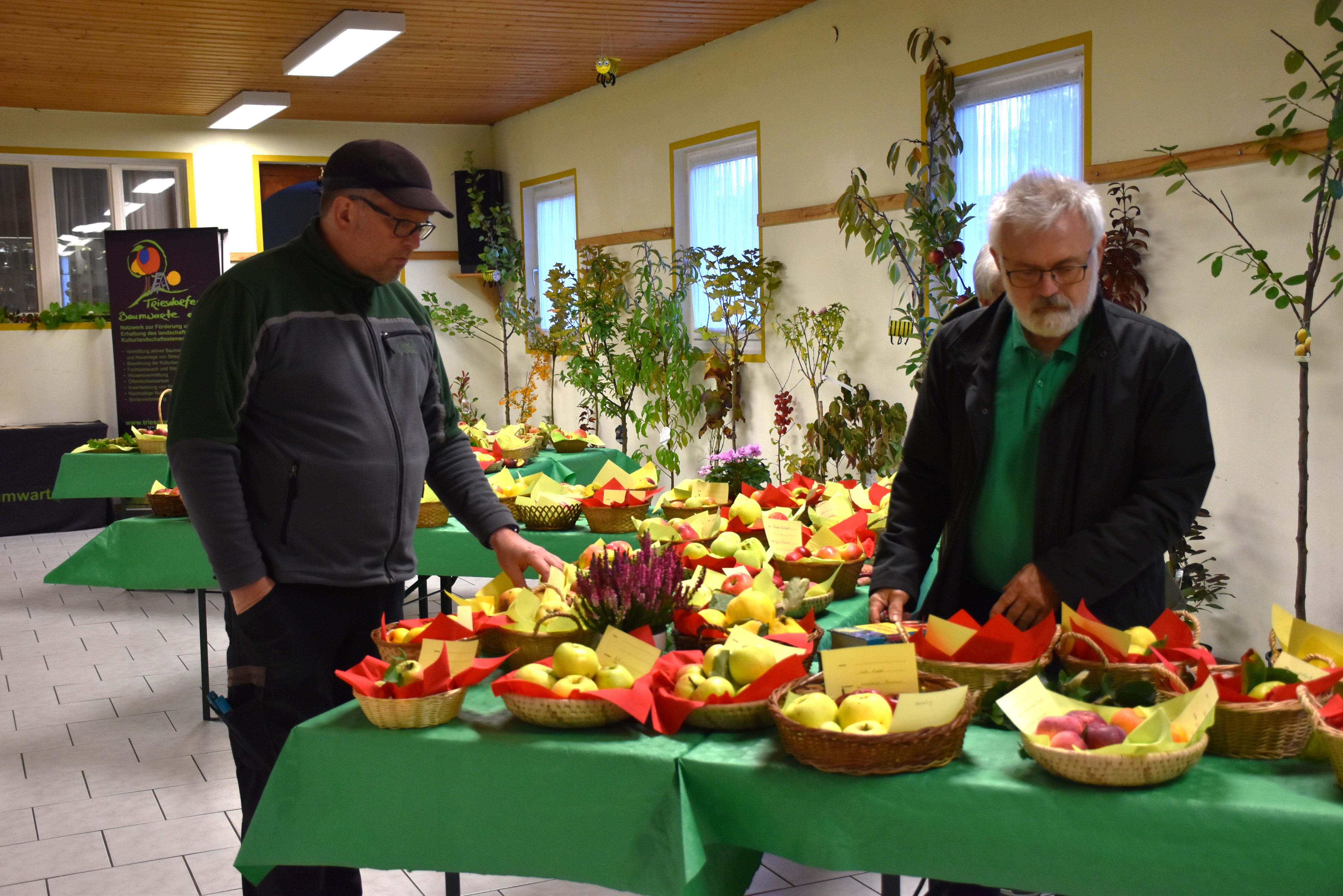 Die Mitglieder des Vereins stellten eine beeindruckende Auswahl an Apfelsorten aus. Darüber hinaus präsentierten sie auch Birnen, Quitten, Nüsse und sogar ausgefallenere Früchte wie Feigen und Birnenmelonen, die in ihren eigenen Gärten gewachsen waren.