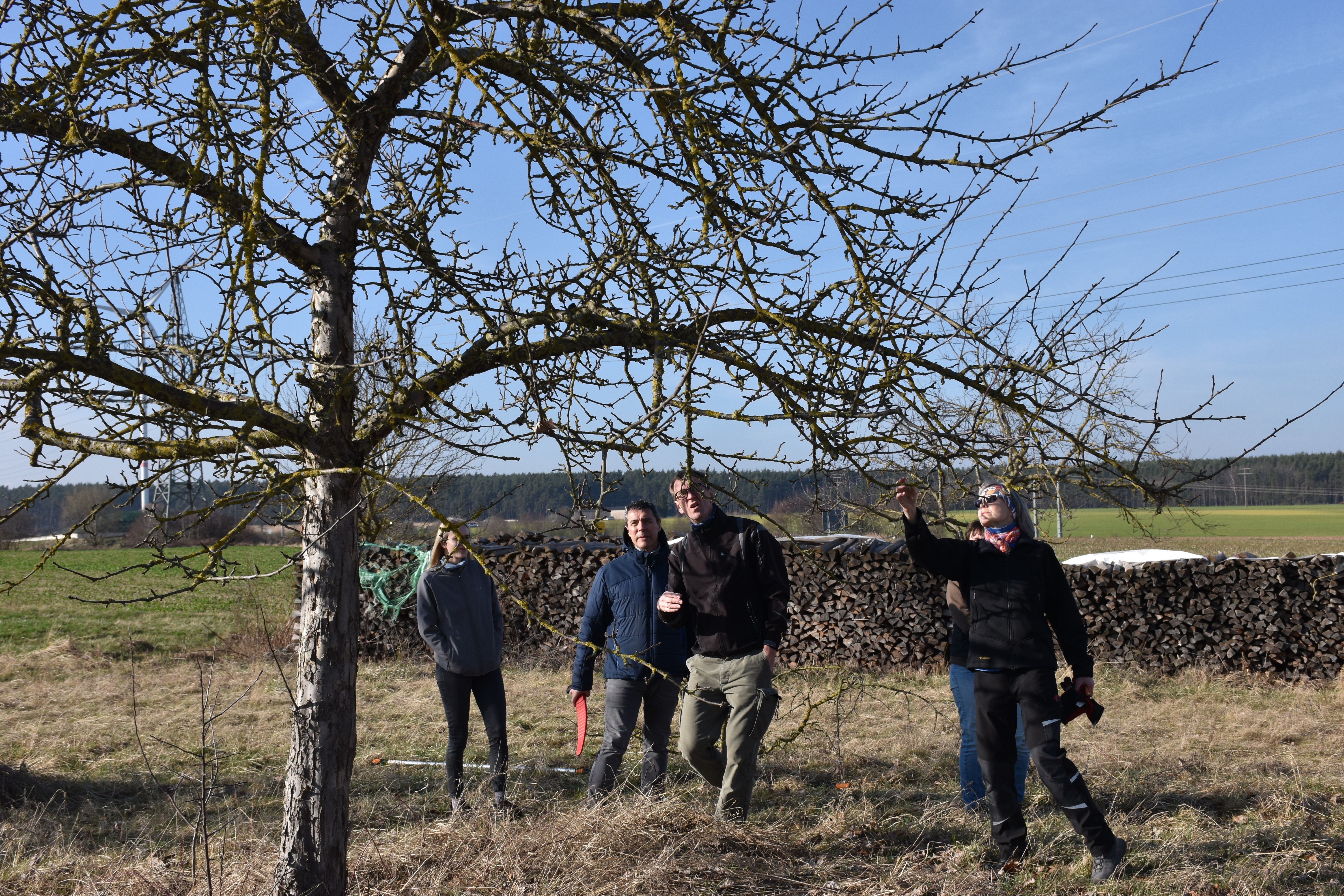 Nach einer kurzen Pause mit Kaffee und Kuchen zum Stärken und Fachsimpeln ging es dann weiter zu älteren Streuobstbeständen. Auch hier durften die Teilnehmer in kleinen Gruppen selbst Hand anlegen und es wurde beratschlagt, welcher Ast nun abgesägt werden soll oder nicht. Zum Abschluss des Kurses waren alle Teilnehmer so voll Datendrang, dass sie am liebsten gleich daheim ihr neu erlangtes Wissen umsetzten wollten.